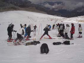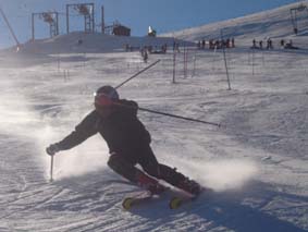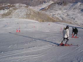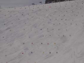 スラロームトレーニングの様子です。 バーンもしっかりパックされており、GS,SLともに最高のトレーニングが望めるでしょう。 |